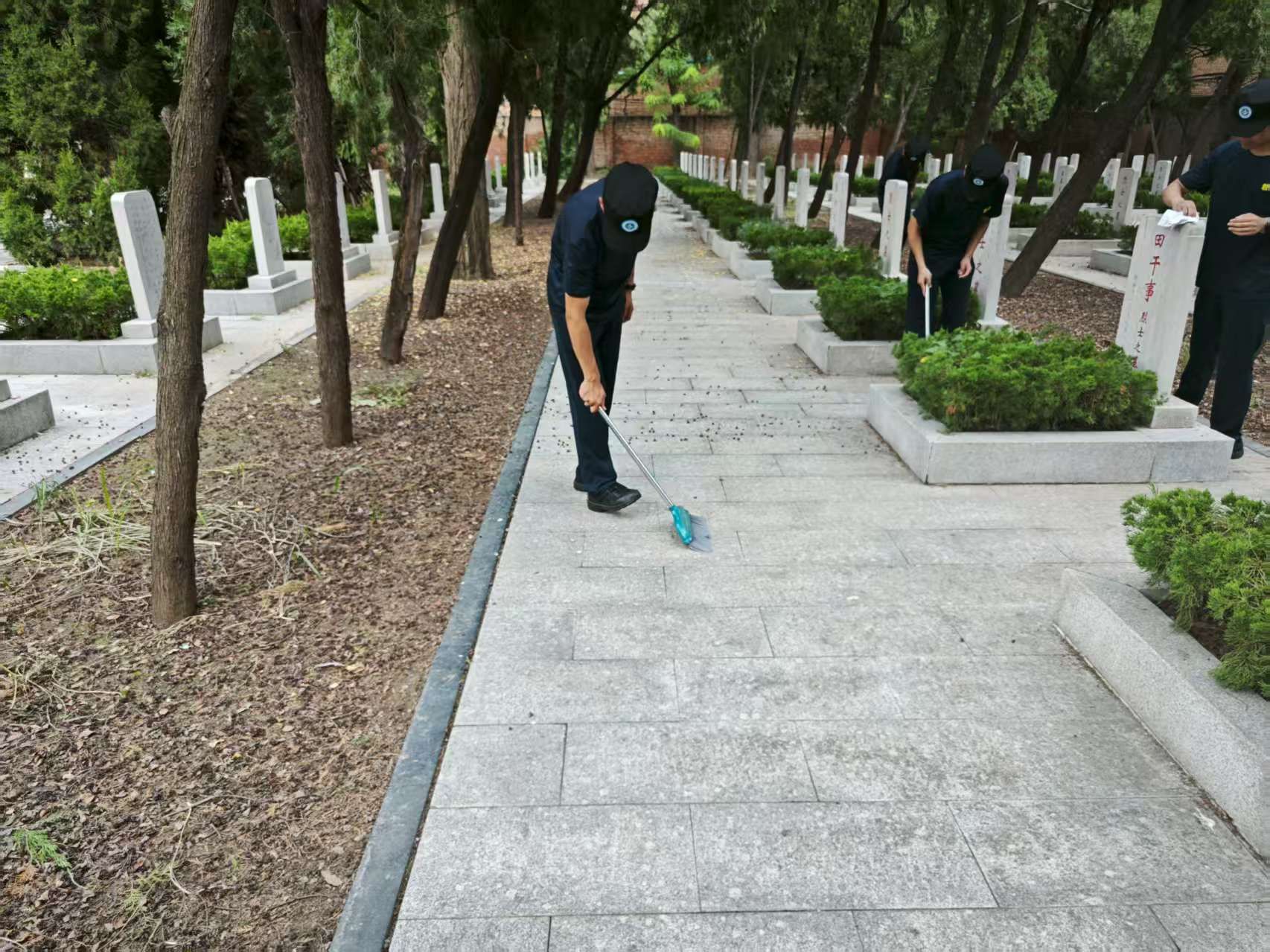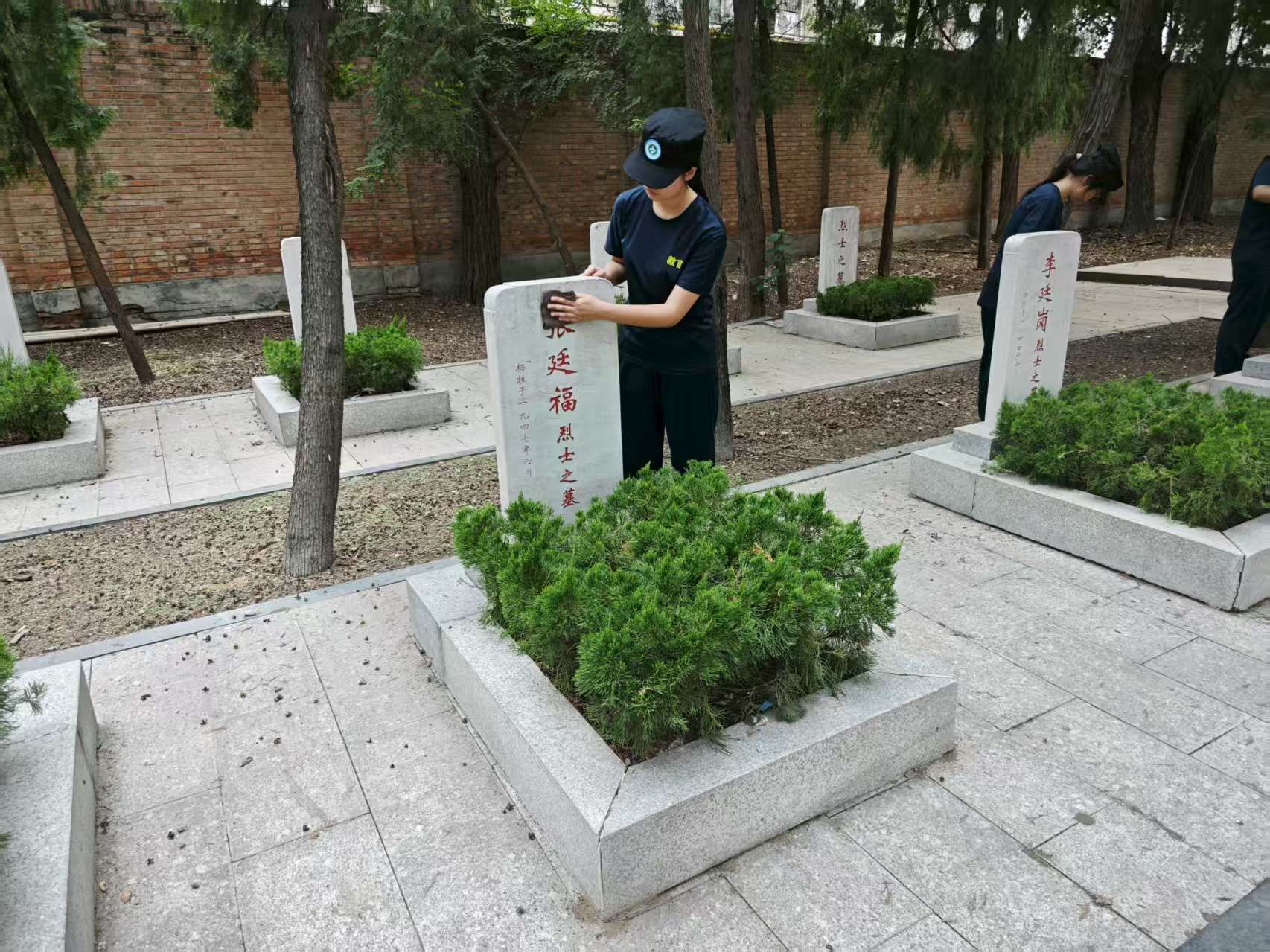 随后,全体人员分组有序开展清扫卫生、擦拭烈士墓碑工作。同学们细致清理着墓区的落叶与杂物,轻柔擦拭墓碑上的灰尘,每一个动作都饱含对先烈的敬仰之情,用实际行动守护英烈安息之地。