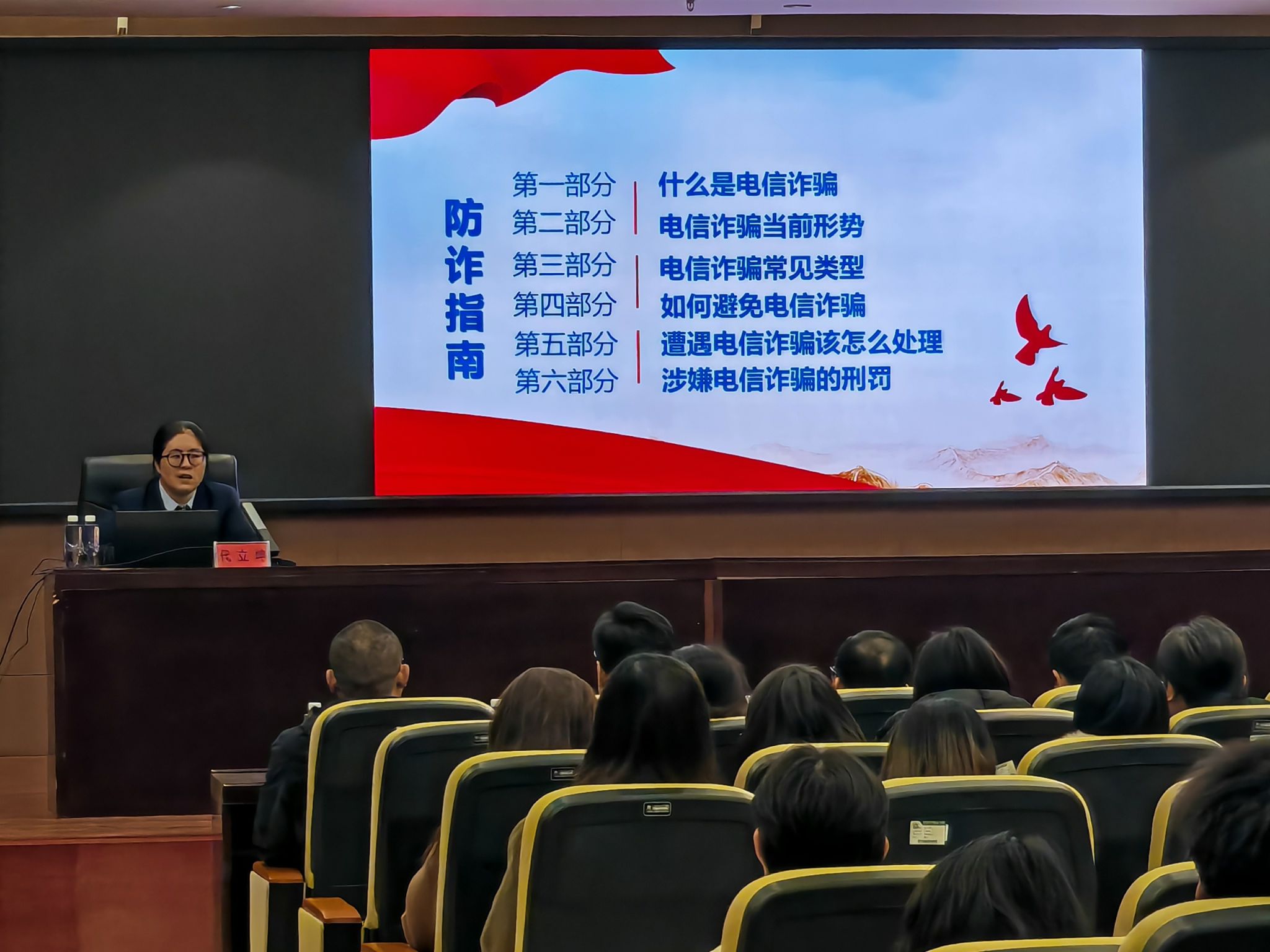 活动伊始,银行金融专家、反诈讲师走进学术报告厅,为到场师生带来反诈安全专题讲座。专家结合高校高发诈骗类型,围绕校园贷、刷单返利、冒充客服、游戏交易、虚假兼职等典型骗局,用真实案例拆解诈骗套路,讲解资金风险识别、个人信息保护、转账核实要点,提醒同学们树立理性消费观念,牢记“不轻信、不透露、不转账”的防骗原则。讲座内容通俗易懂、针对性强,现场学生认真聆听,有效增强了风险防范意识和辨别诈骗能力。