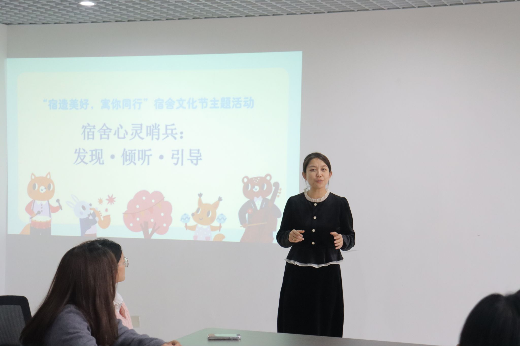 本次培训作为“宿造美好,寓你同行”宿舍文化节的一项活动,旨在通过对宿舍联络员心理健康、沟通技巧、心理危机识别与报告技术的培训,帮助宿舍心理联络员培养初步的心理健康工作技能,为他们在后续的学习生活中发挥心理预警、朋辈陪伴、营造温馨和谐宿舍关系等工作奠定良好的基础。